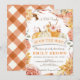 O meu convite de Chá de Bebê do Pequeno ABÓBORA Floral Sem Gênero é a maneira perfeita de convidar amigos e familiares para uma festa! O cartão apresenta uma moldura floral e abóboras em aquarela. A parte de trás do cartão tem um padrão xadrez búfalo laranja queimado. Você vai se apaixonar por esses convites de chá de bebê.