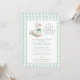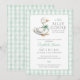 Este convite de chá de bebê encantador apresenta um pequeno ganso fofo e um fundo de gingham verde. Criado por Thisisnotme©