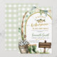 Convite de chá de bebê do pescador em xadrez sage, Um pequeno pescador está a caminho, Convite de chá de bebê de pesca editável