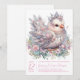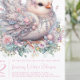 Convite de chá de bebê do pintinho joia com um lindo pintinho adornado com joias e tiara em um fundo floral pastel. Este convite de chá de bebê de menina é facilmente personalizado com seu texto e você pode alterar a cor do fundo na frente e no verso e a cor do texto.