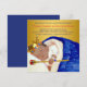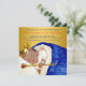 Chá de bebê de príncipe real étnico com adorável bebê príncipe dormindo enrolado em um cobertor azul real usando uma coroa de príncipe dourada e pulseira de pérolas e cetro com joias. Este convite de chá de bebê azul real e dourado para o príncipe étnico é facilmente personalizado para o seu evento com seus detalhes no estilo de fonte de sua escolha. Você também pode remover o fundo dourado e deixar simples ou adicionar sua própria cor. Este é um design impresso sem laços, joias, etc. reais.
