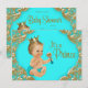 Convite Chá de Bebê do Príncipe Turquesa Dourado
