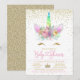 Convites de chá de bebê do unicórnio arco-íris com adorável face de unicórnio floral aquarela e chifre arco-íris em um lindo fundo dourado. Este convite de chá de bebê do unicórnio fofo é facilmente personalizado com os detalhes do seu evento. Você pode mover a coroa conforme necessário para o seu texto e remover o fundo dourado no verso para adicionar a cor de fundo de sua escolha.