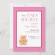 Convite de chá de bebê rosa para menina com ursinho de pelúcia. O cartão é completamente personalizável, você pode editar o texto e as cores do texto e do design, a cor de fundo também pode ser personalizada. O cartão apresenta letras simples e contemporâneas que se adequam tanto a um encontro formal quanto casual para aquele momento especial. Se precisar de ajuda para personalizar, entre em contato com o designer em ArtByLiz@gmx.com e ele será personalizado para você sem custo adicional.