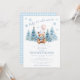 Celebre a chegada da sua pequena com o nosso lindo convite de chá de inverno 'bebê está frio lá fora'. Apresentando um ursinho de pelúcia bonito segurando um balão rosa, sentado entre pinheiros decorados e flocos de neve azuis caindo do céu. Este convite dá o tom perfeito para uma doce festa de pré-disquete de inverno ou de chá de Natal.