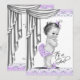 Convite de chá de bebê vintage adorável para menina lavanda. Este convite de chá de bebê roxo lavanda e cinza é facilmente personalizado para o seu evento, adicionando os detalhes do evento, estilo de fonte, tamanho e cor da fonte e texto. Por favor, note que todos os adesivos, cartões e desenhos de convite que você encontrará no Zazzle são gráficos impressos sem joias, laços, relevos, relevos ou peças ou partes adicionadas.