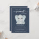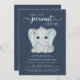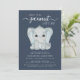 Um belo convite para o chá de um bebê azul-escuro com "A Sweet Little Peanut Is On Your Way" escrito em uma simples tipografia branca e um roteiro branco-na moda, e uma aquarela azul pastel de um elefante bebê.
