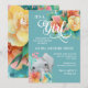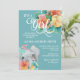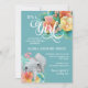 Teal, rosa e floral amarelo de pastel com um adorável convite de chá de fraldas para uma bebê elefante