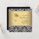 Convite de chá de bebê de abelha bumble preta e amarela para mãe e bebê com damasco preto e amarela. Este convite de chá de bebê de abelha bumble é facilmente personalizado para o seu evento, adicionando detalhes do evento, estilo de fonte, tamanho e cor da fonte e texto.