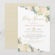 Essos convites de chá de bebê elegantes apresentam uma borda floral em aquarela com rosas pintadas, peônias, ranúnculos e folhas em tons neutros adoráveis de branco, creme, rosa rosado, dourado e verde. O verso do cartão é bege neutro / marrom claro com um padrão de pontos escovados abstratos. Personalize o texto para o evento especial da futura mamãe.