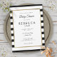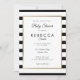 Convite Chá de Bebê Elegante Listrado de Preto e Branco