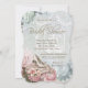 Linda convite de chá de bebê com champanhe rosa, azul turquesa e rosa, sapato de salto alto com pérolas marfim. Este convite de chá de bebê vintage elegante é facilmente personalizado para o seu evento com a escolha de palavras, estilo de fonte, etc.
