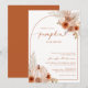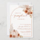 Convite elegante para chá de bebê em arco com flores de outono em aquarela e design de abóbora em creme.