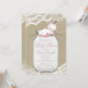 Convite de chá de bebê em jarro de pedra com flores cor-de-rosa e renda para menina. Este convite de chá de bebê em jarro de pedra é facilmente personalizado para o seu evento, adicionando seus detalhes no estilo de letra e cor, e texto de sua escolha.