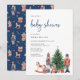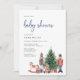 Convite de Chás de Bebê de Natal Blue Holiday. Eleve o seu chá de bebê com este encantador convite da Coleção de Convites de Chás de Bebê de Natal do Nutcracker. Com arte em aquarela pintada à mão de quebra-nozes encantadores, brinquedos de Natal e uma árvore de Natal lindamente decorada, este convite é colocado contra um fundo branco com um padrão azul-marinho coordenado no verso. Cada detalhe exala uma elegância festiva, tornando-o a escolha perfeita para celebrar sua ocasião especial. Encomende agora e defina o tom para um evento mágico!