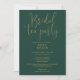 Este simples e elegante convite de festa de chá de noiva com caligrafia esmeralda verde e dourada pode ser personalizado com todas as informações do seu evento especial. Projetado por Thisisnotme©