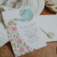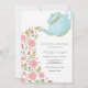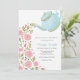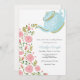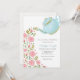 Convite de chá de bebê com uma borda de flores cor-de-rosa e folhagens fluindo de um adorável bule azul turquesa caprichoso. Personalize com suas informações para a futura mamãe. Clique em "clique para personalizar ainda mais" para alterar o estilo, tamanho ou cor da fonte.