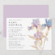 Este convite de chá de bebê elegante é perfeito para a primavera e o verão. Este design apresenta íris em aquarela em tons de lilás e azul pervinca. Toques sutis de dourado adicionam um elemento mágico.