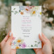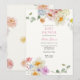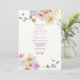 Convite de chá de bebê com uma borda de flores silvestres em aquarela. Personalize com as informações da futura mamãe. Clique em "clique para personalizar ainda mais" para alterar o estilo, tamanho ou cor da fonte.
