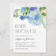 Convite Chá de Bebê Floral de Hortênsia Azul em Aquarela
