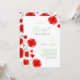 Convite de Chá de Bebê Floral com Papoula Vermelha em Aquarela, Folhas Verde e Jardim, com Tons de Cor Salvia, Tipografia Elegante e Padrão Floral (Verso).