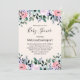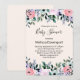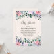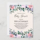 Convites de chá de bebê com um lindo design floral feito com aquarelas. Flores de jardim rosa, roxo e verde.