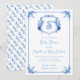 Convite Chá de Bebê Floral em Azul Aquarela com Brasão de