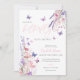 Este convite de chá de bebê bonito e elegante apresenta flores silvestres e borboletas e pode ser personalizado com todas as informações da sua celebração especial, com o código QR do seu registro e detalhes do evento no verso. Criado por Thisisnotme©