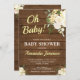 Convite Chá de Bebê Floral Rústico Neutro em Madeira