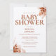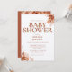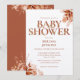 Um convite de chá de bebê elegante para o outono, apresentando uma tipografia terracota elegante e folhagens florais rústicas. Criado por Thisisnotme©
