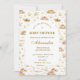 Um design suave e inspirado em contos de fadas, apresentando cogumelos delicados, tons terrosos quentes e um padrão ilustrado suave que parece saído diretamente de uma floresta de conto de fadas. Os detalhes botânicos sutis e a composição arejada criam uma atmosfera calma e aconchegante—perfeita para uma celebração inspirada na natureza.