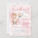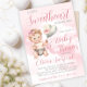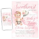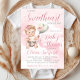 Convite de chá de bebê little sweetheart com adorável bebê menina e balão em um lindo fundo de nuvem rosa. Este convite de chá de bebê para menina é facilmente personalizado com os detalhes do seu evento.