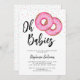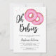 Este convite de chá de bebê de gêmeas apresenta donuts rosa em aquarela.