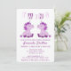Convite de Chá de Bebê Gêmeas Meninas Unicórnio Rosa. O design tem dois pequenos unicórnios rosa e roxo para gêmeas meninas.