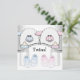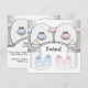 Convite de chá de bebê gêmeos com ovelhas, mamadeiras e botinhas de bebê rosa e azul. Adicione seus detalhes na frente e/ou no verso deste convite de chá de bebê gêmeos com ovelhas adicionando detalhes do evento, estilo de fonte, tamanho e cor da fonte e texto. Este convite de chá de bebê gêmeos com ovelhas rosa e azul também é ótimo para um convite de festa de revelação de gênero.