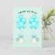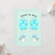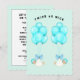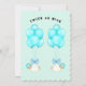 Convites de chá de bebê para gêmeos meninos criativos com buquês de balões azuis e gêmeos bebês usando capacetes.