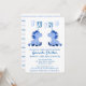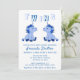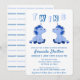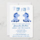 Convite de Chá de Bebê Gêmeos Meninos Unicórnio Azul Fofo. O design tem dois pequenos unicórnios azuis para gêmeos meninos.