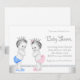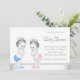Convite de chá de bebê gêmeos rosa e azul bonito. Este convite de chá de bebê de príncipe e princesa é facilmente personalizado para o seu evento, adicionando detalhes do evento, estilo de fonte, tamanho e cor da fonte e texto. Este convite de chá de bebê de príncipe e princesa rosa e azul funciona muito bem para uma festa de revelação de gênero.