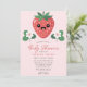 Celebre a chegada mais doce com este convite de Baby Shower Kawaii Morango. Com um adorável morango sorridente com acentos florais e um fundo rosa, este design divertido é perfeito para temas frutados, chás de bebê de verão ou qualquer pessoa que ama vibes estéticas fofas. Totalmente personalizável com os detalhes do seu evento e apoiado por um padrão divertido de morango para charme extra. Ótimo para chás de bebê de menina ou celebrações neutras com um toque caprichoso.