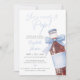 Este convite de chá de bebê divertido apresenta uma garrafa de refrigerante retrô com um lindo laço azul e pode ser personalizado com seus detalhes em uma tipografia elegante. O verso apresenta um fundo xadrez azul. Criado por Thisisnotme©