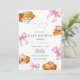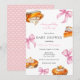Este convite encantador captura a combinação perfeita de calor de outono e doçura feminina. Belas ilustrações em aquarela de tortas de abóbora estão ao lado de fitas e laços rosa-satinê, tudo sobre uma paleta de cores suaves de rosas-esfumados, cremes e neutros quentes. O design é ideal para dar as boas-vindas a uma menina, evocando uma sensação de lar, colheita e celebração de coração.