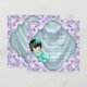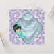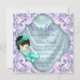 Convite de chá de bebê roxo e azul turquesa com redemoinhos roxos e turquesa e adorável bebê menina usando uma faixa de cabeça de renda e laço em um belo fundo de cetim. Você pode adicionar seus detalhes no estilo de fonte e cor e redação de sua escolha.