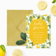 Este convite de chá de bebê apresenta um vibrante design de limão amarelo, perfeito para dar as boas-vindas a um pequeno ao mundo. O design delicado é perfeito para chás de bebê de primavera e verão e é neutro em termos de gênero. O convite inclui todos os detalhes necessários para o evento, incluindo data, hora e local. É uma maneira encantadora de convidar os convidados para celebrar a chegada iminente do seu novo amor!