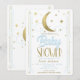 Convite Chá de Bebê Lua e Estrelas Azul Claro e Dourado