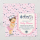 Convite Chá de Bebê Marítimo Rosa e Azul-Marinho para Meni