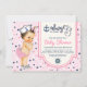 Convite de chá de bebê marítimo para meninas com uma linda bebê morena vestindo calças rosa com babados, chapéu de marinheiro e colar de pérolas em um fundo rosa e azul com bolinhas. Você pode personalizar facilmente esses convites de chá de bebê marítimo para o seu evento simplesmente adicionando seus detalhes. Você também pode alterar a cor do fundo.