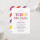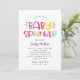 Este convite divertido e colorido para chá de bebê apresenta letras negritas "Baby Sprinkle" em uma paleta de arco-íris lúdica com rosa vibrante, roxo violeta, azul aqua, vermelho laranja e amarelo brilhante em um fundo branco crocante. Listras diagonais de cabana em arco-íris adicionam um toque festivo e atraente na parte de trás. Todas as palavras são totalmente personalizáveis para a sua celebração. Uma escolha perfeita para uma festa vibrante e moderna de chá de bebê para menina.