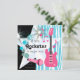 Convite de chá de bebê para menina rockstar com zebra rosa e azul-turquesa adorável. Adicione seus detalhes na frente e no verso deste convite de chá de bebê rockstar azul-turquesa e rosa simplesmente escolhendo o botão "Personalize!" para começar a adicionar os detalhes do seu evento, estilo de fonte, tamanho e cor da fonte e texto. Por favor, note que todos os desenhos de convite que você encontrará no Zazzle são gráficos impressos em papel liso sem joias, laços, relevos, rebaixos ou peças ou partes adicionadas.