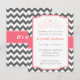 Celebre o nascimento do seu orgulho, alegria e jóia - sua bebê princesa com este convite de chá de bebê menina com tiara rosa e fundo com padrão de chevron cinza escuro e branco. Elegante, sofisticado com uma dose doce de rosa! Personalize facilmente com os detalhes da sua festa.