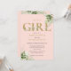 Convite Chá de Bebê Menina Botânico Rosa Dourado